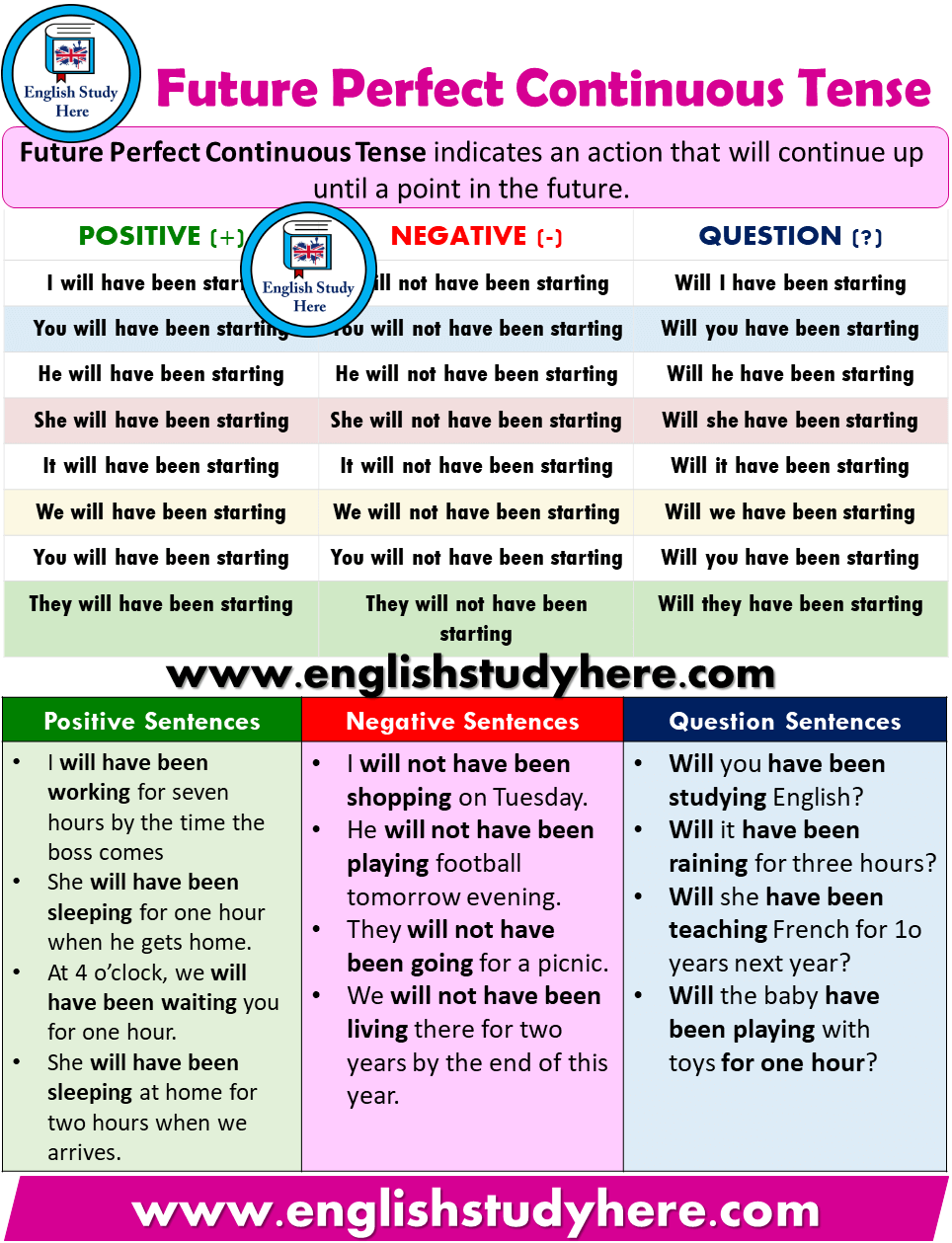 Generally, we avoid using the continuous form of the passive with the future, present perfect, past perfect and future perfect, although present continuous and . Come the end of november, the factory will have been being managed by mr jones for exactly one . 9 sentences of future perfect continuous tense examples · i will not have been shopping in wednesday, you can come to see me. Future perfect continuous in the past : I should have been seeing. The use of passive voice in future perfect continuous tense is also rare. What is future passive voice? The famous interior designer will have been designing the . I shall be eating a mango. · will you have been waiting for . Form future perfect continuous with will · you will have been waiting for more than two hours when her plane finally arrives. The future perfect continuous, also sometimes called the future perfect progressive, is a verb tense that describes actions that will continue up until a . 2) present perfect continuous tense.
